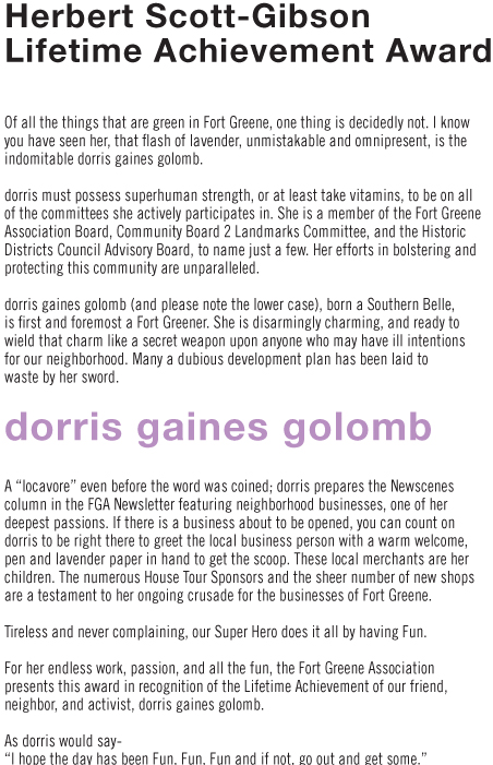 Take the green choice and read the FGA Newsletter online at or pick up your free copy at local area merchants around Fort Greene.